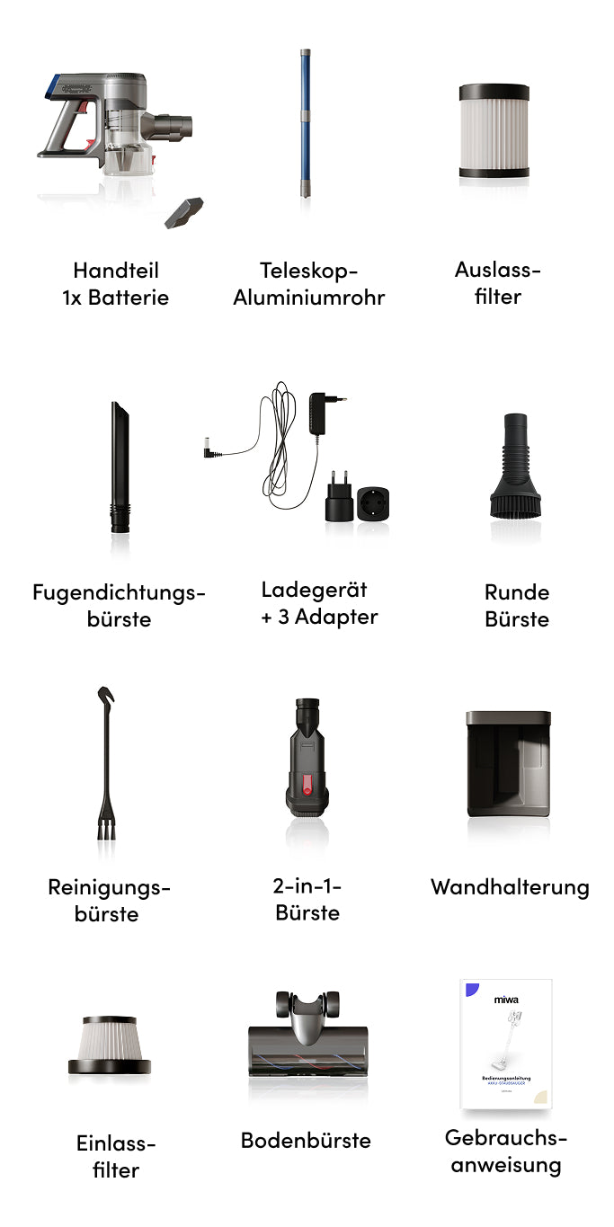 Das erhältst du mit dem miwa Akku-Staubsauger